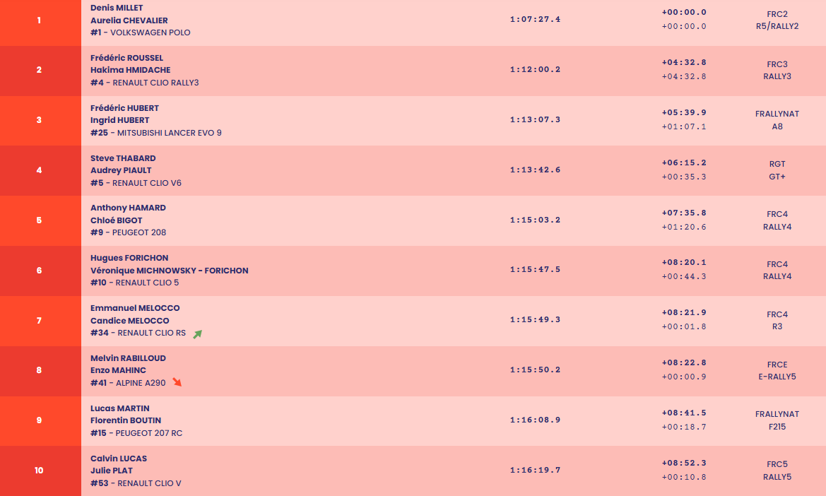 Pour compléter le podium, c'est un Clio Rally3 et Mitsubishi Lancer A8, une mixité de catégorie rare en Championnat de France de deuxième division ! Respectivement deuxième et troisième, Frédéric Roussel et Frédéric Hubert complètent donc le podium après avoir su déjouer les pièges de ce Rallye de l'Indre.