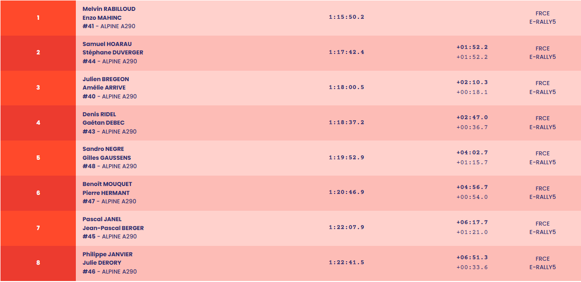 Il était venu pour jouer la victoire et c'est chose faite, avec la manière qui plus est ! Après une belle première journée Samedi, Melvin Rabilloud a su conserver sa large avance au classement pour aller décrocher une superbe victoire sur les routes de l'Indre. A 28 ans, le pensionnaire du Clio Trophy marque à l'histoire d'Alpine en devenant le tout premier vainqueur de ce tout nouveau trophée Alpine A290. Si son programme 2026 est encore inconnu, nul doute que Rabilloud cherchera à renouveler l'expérience A290 Rallye l'année prochaine.
