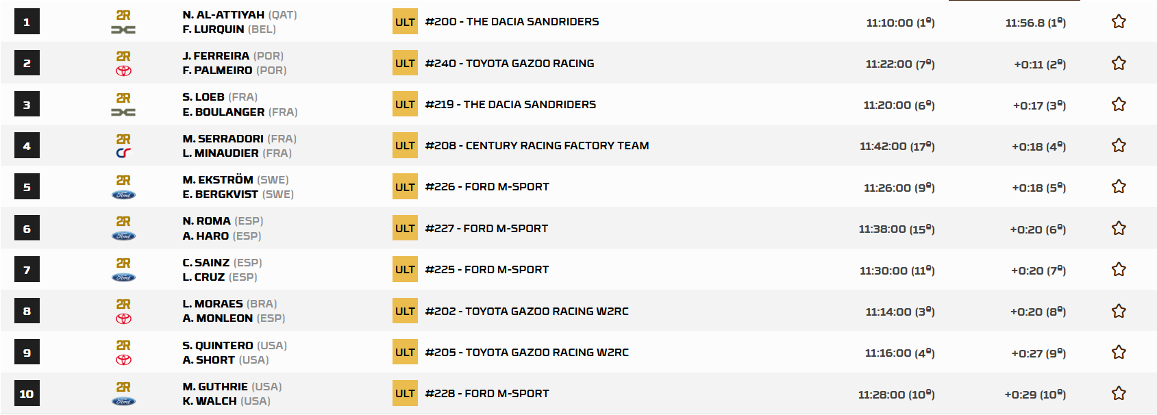 Avant de débuter les hostilités demain, il fallait d'abord effectuer les 19 kilomètres du prologue autour du camp de base à Fès. Nasser Al-Attiyah s'impose devant Joao Ferreira et Sébastien Loeb. Tir groupé pour Ford avec Ekström, Sainz, Roma et Guthrie tous dans le top 10. Au milieu de la bataille pour le titre, les équipages Ford espèrent pouvoir tirer leur épingle du jeu afin de conclure avec panache, une première saison qui n'aura pas été autant emplie de succès que celle de Dacia, clôturant aussi leur première saison dans le championnat.