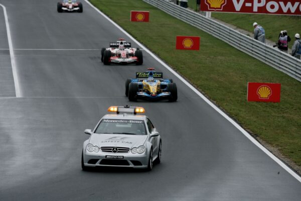 L’histoire a débuté en 1996, lors du Grand Prix de France. Quelques semaines plus tard, le Safety Car entrait en piste pour la première fois en Belgique. Depuis, treize modèles différents ont porté l’étoile à trois branches dans ce rôle crucial.