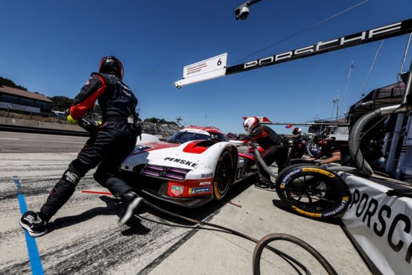 - #6: Porsche Penske Motorsports, Porsche 963, GTP: Mathieu Jaminet, Matt Campbell, pit stop