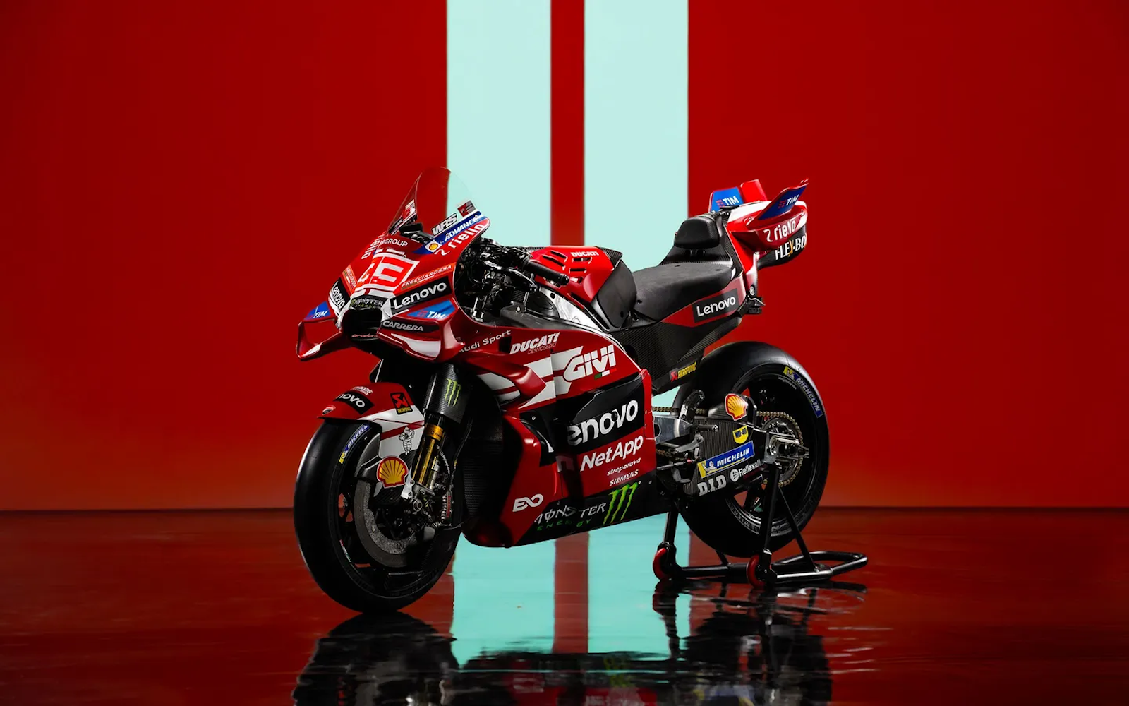 Ce sera une saison riche de sens avec la célébration du centenaire de la fondation de Ducati (1926), un anniversaire qui se reflète également dans le design graphique de la Desmosedici GP avec le nouveau Rosso Centenario mat et la double bande blanche. Un rouge profond, comme celui des origines : du rouge de la Ducati 60 (1949), la première moto complète qui a marqué notre entrée dans le monde de la fabrication de motos, à la Gran Sport « Marianna » (1955), la première Ducati conçue pour la compétition par l’ingénieur Fabio Taglioni. Cette année, l'équipe vise sa 100e victoire en MotoGP.